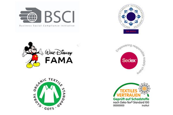 We are working with large capable factories who had all the following compliances according to buyer requirements.